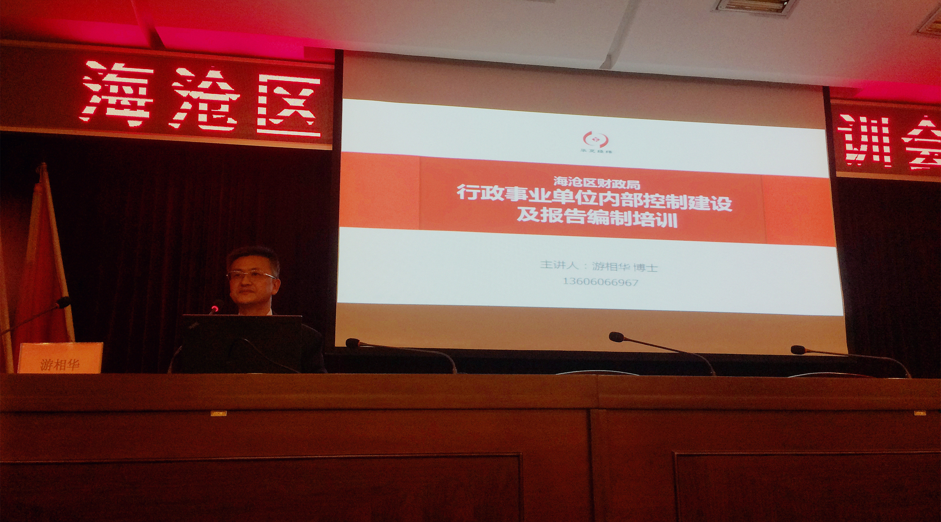 2017年3月16日,華夏經(jīng)緯總裁游相華博士為海滄區屬行政事業(yè)單位領(lǐng)導及內控負責人開(kāi)展了主題為“行政事業(yè)單位內部控制建設及報告編制”的輔導培訓。游相華博士以行政事業(yè)單位發(fā)生過(guò)的舞弊案例作為切入口,由淺入深,再深入淺出地對行政事業(yè)單位為什么要開(kāi)展內部控制建設、什么是行政事業(yè)單位的內部控制、如何開(kāi)展內部控制建設工作、內部控制建設工作中的重點(diǎn)難點(diǎn)問(wèn)題進(jìn)行解讀和案例剖析,并對什么是內部控制報告、內部控制報告編制的要點(diǎn)、如何編制內部控制報告進(jìn)行了深入細致地講解。此次培訓受到了參訓單位的一致好評,為參訓單位樹(shù)立內部控制理念,深化內部控制認識,進(jìn)一步推進(jìn)海滄區屬行政事業(yè)單位內部控制建設工作奠定了良好的基礎。